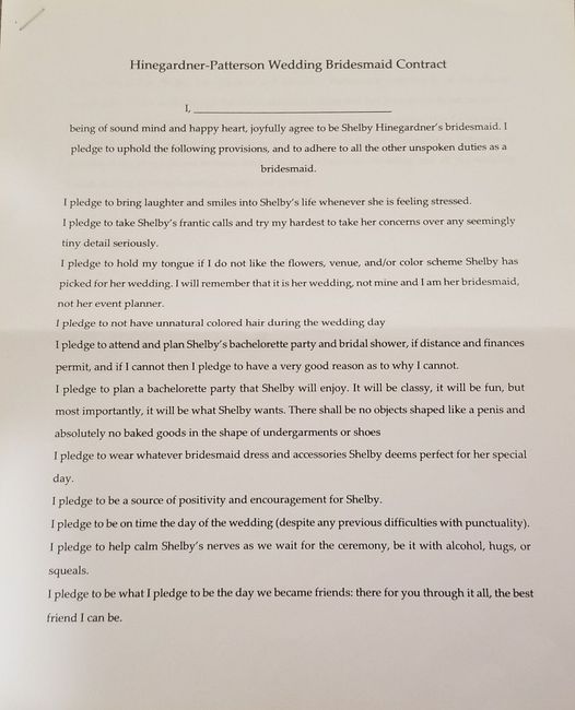 So I’m on a bride group on Facebook, I never post on there just like to look/read. this morning a women posted her proposal boxes... which include a contract and expectations. Most of the comments were wanting to copy the contract! WTF is wrong with...