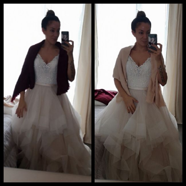 I need a shawl because it'll be cold but not freezing cold in Naples on January 4th. The ivory matches better with the top of my dress but the blush compliments the bottom. I'm leaning towards ivory. What do you all think?