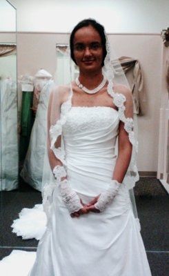 I finally got my dress fitted. After seeing it again, I have to say I'm in love with my dress all over again. I really truly love it. Here are some photos of me in my dress. Some of them are not the highest res, so sorry what do you all think of...