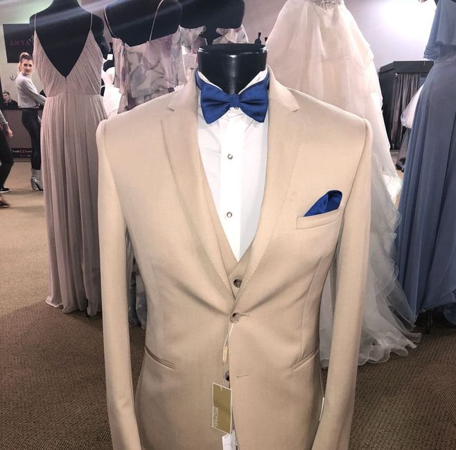Hello, everyone! The color scheme for my wedding will be royal blue, ivory and champagne. My wedding will also be during the fall. I was wondering what color tux would go well with royal blue bridesmaids dresses. I’ve added pictures of a display that...