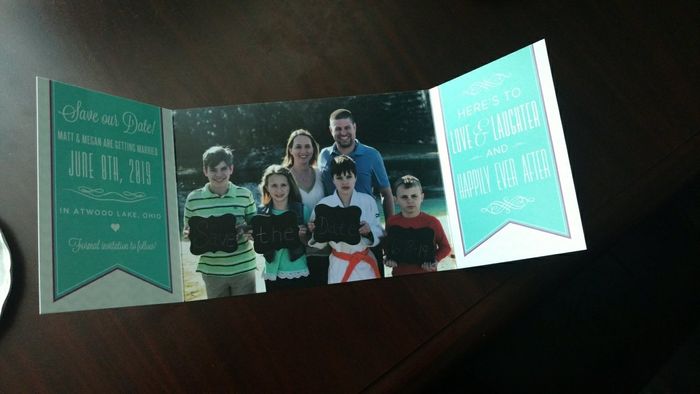 So excited we got our save the dates and they turned out just how I wanted them! This is a second wedding for both of us and we wanted to include the kids!