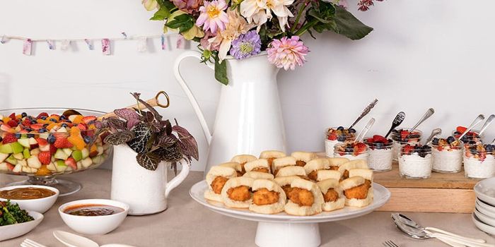We will be at a resort with approx. 10 guys and 10 girls getting ready in separate rooms. 10-11am prep time - 2pm first looks - 4:30 ceremony - 5pm cocktail hr - 6:30pm dinner served -should we have an all in one breakfast/lunch spread where we eat...