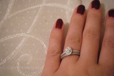 FH bought me a new ring on Friday and it is absolutely beautiful. I took you ladies advice and didn't go through Kay (okay, it wasn't really advice, more like kept hearing horror stories!) which was our original plan. Instead, we went with Jared...