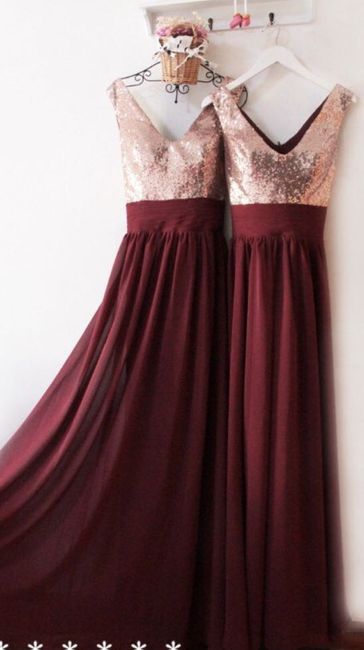 My wedding is on Dec. 8 of this year and even though we have a couple more months before we have to purchase bridesmaid dresses, I’ve been on the hunt! I am looking for dresses with a rose gold sequin bodice and a maroon or burgundy skirt, like the...