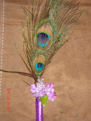 We are incorporating peacock feathers in our wedding everywhere...main ceremony colors are dark purple and black....i am completely clueless as to what flowers to use in the bouquets.....i want to use silk flowers...any ideas?