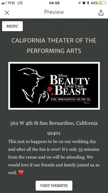 So our wedding is from 11-4. I found a beauty and the beast musical that I'd love to go to the day of my wedding at 8pm and it's roughly 45 mins from my venue. Now....are we obligated to hang out w our friends and family after the wedding is over?...
