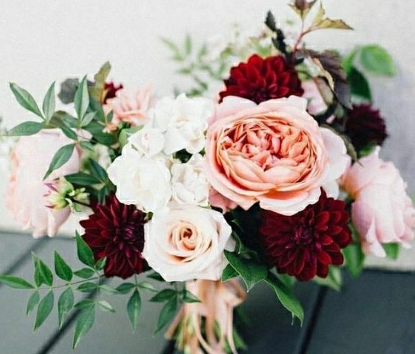 I had given my MOH the theme colors and I wanted to do light colors, more on white, blush tones, and I added burgundy like an accent. I told her I'd like her to wear rose gold, light colors because I only want my groom to have that accent color. She...