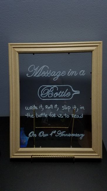 I am so happy about these wedding signs I just wanted to share them. A friend of mine had some frames he did not want anymore and I just glued the glass on it, removed the back part of each and voila! I wrote with a chalkmarker and a template that I...