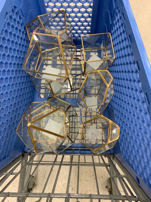 I’m using these for my centerpieces and been searching high and low for a decent price. I saw online that Hobby lobby has 50% off glass terrariums, so I went today just to see them in person for size and ended up buying 10! I believe they go on sale...