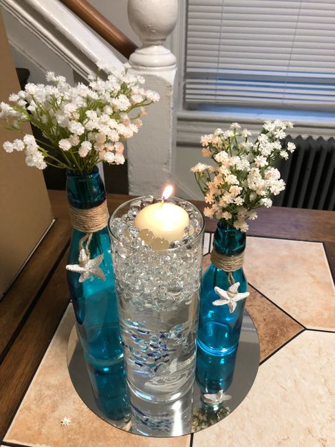 Beach theme table centerpiece Beach theme table centerpiece Can you ladies please help with any/all inexpensive suggestions for our table centerpieces? We have a beach theme (in NJ in December), yes we are lol.. The colors and décor will have a...