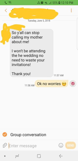 So I got the attached text message from a cousin this morning. My mom reached out to her mom to get the correct spelling of her (cousin's) husband's last name. This wasn't an issue as our mom's are sisters and talk daily. I was so taken aback my it...