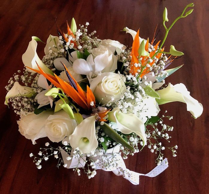 I LOVE bridal bouquets! Show off yours, or an inspiration photo. How does it tie into your wedding? Our wedding colors were golds, browns and oranges—I wanted orange roses with some white freesia and greenery. Because some décor items were wrapped...