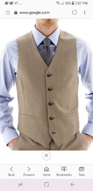 So im having a rustic barn wedding and I am looking for the mens attire. They will be wear either tan or beige vests with white under shirts and tan pants. They wont be wear the full suit. I am having trouble finding the correct color and material i...