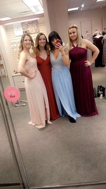Here are 4 of my 5 bridesmaids! We went dress shopping the other day, i told the girls they could pick whatever style they felt most comfortable as long as it was a long dress(they dresses are all ordered in wine color). I am so glad I went this...
