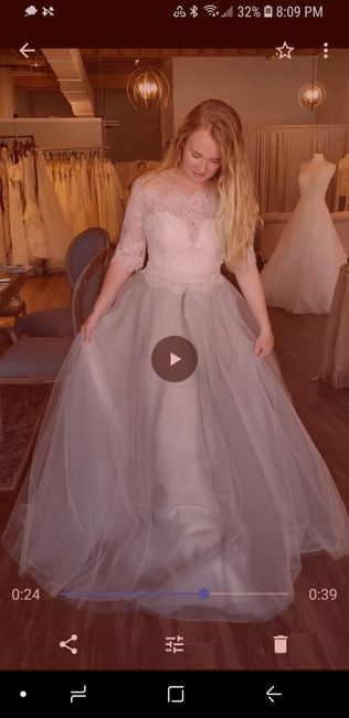 This is a crappy screenshot of a video but this is my dress! I am not your average bride so I liked the dusty blue skirt! Two questions, first: I basically had to get the top custom made since it didnt have the sweatheart underneath part of the top,...