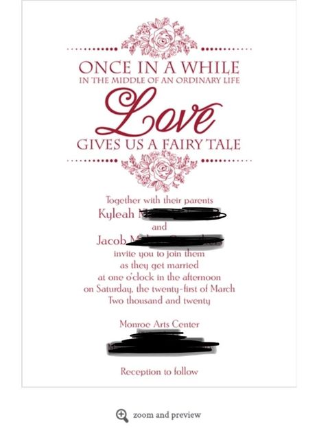 Hi there, so first let me start off saying that I have not ordered these yet since its still too far away, but my FH and I have come up with these as the invites! It'll only be 22$ for 45 of them and we don't need even that many but getting a few...