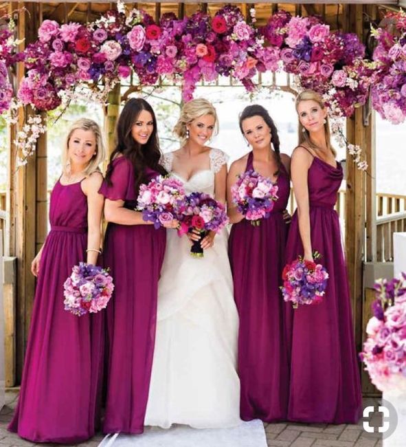 I’m trying to decide on colors for my bridesmaids’ dresses and wedding in general. After much deliberation, I’ve been really liking a variety of shades in the same color family. What do you think of this idea? Has anyone had colors similar? My dress...