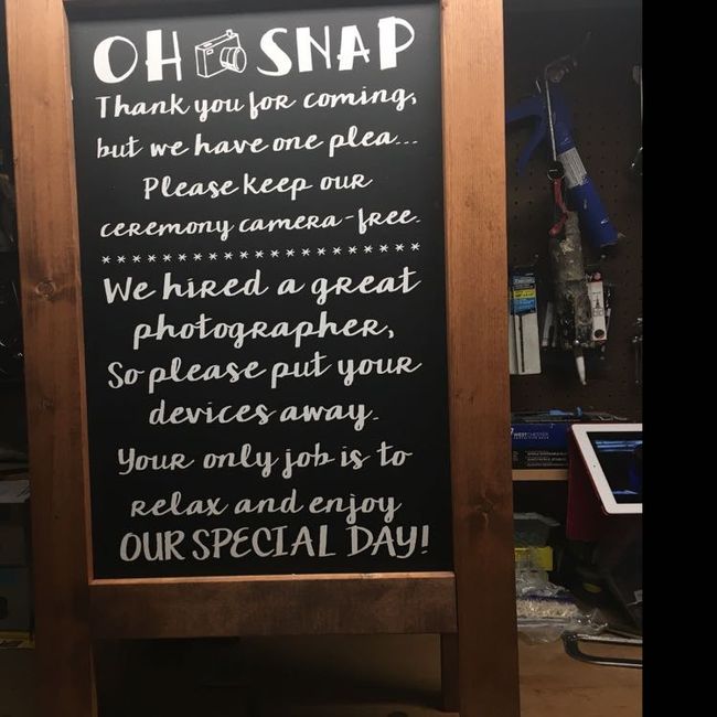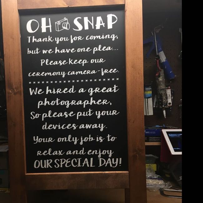 So we were thinking of making a sign for an unplugged ceremony but after the ceremony anyone could use there phone. We were wanting to do this because we don't really want people to have their cell phones out when the photographer is taking pictures...