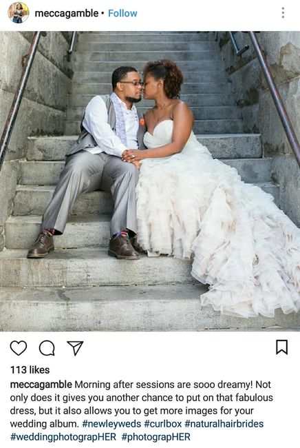 So while on Instagram searching for #naturalhairbrides I came across this picture with the following caption: "Morning after sessions are sooo dreamy! Not only does it gives you another chance to put on that fabulous dress, but it also allows you to...