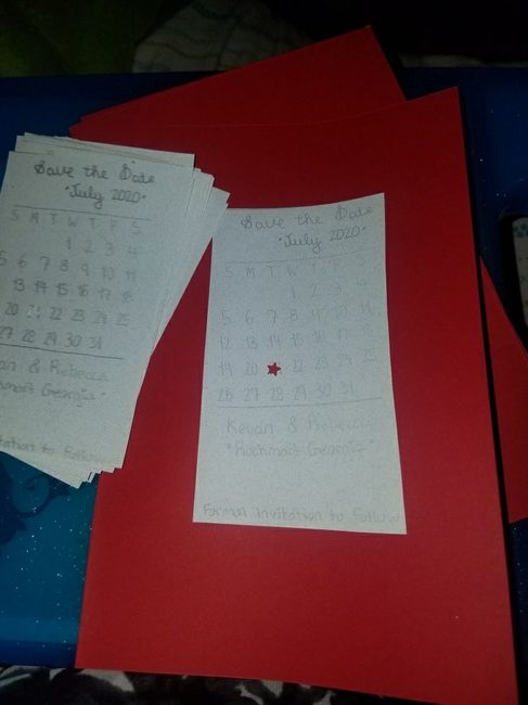 So I was finally able to purchase red card stock paper, to finish my save the dates. But now I'm stuck and don't know what to do for the border. Thinking about drawing hearts. What do you think?