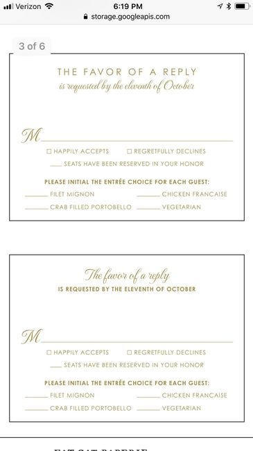 I have an invite suite I am using and the RSVP only has accept or regret. I need to change it up to reflect meal choice for sure and I am also wondering if I should have a line designating number of seats and how many will be attending. I would...