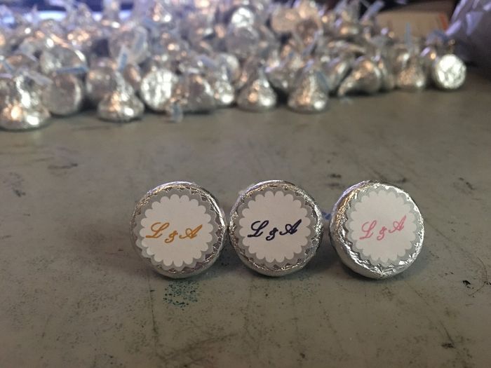 I just had to show off our favors!! It is one more thing to cross off the list!!! The groom box will come with Hershey kisses (last picture) and Skittles. The bride box will come with Hershey kisses and Starbursts. Favor Boxes Favors
