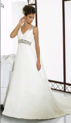 I'm thinking of just getting chandelier earrings for my dress. The straps are beaded so I don't think I need a necklace. Here is my dress below, except it is ivory with silver beading. Any help? I have been looking and can't find anything.