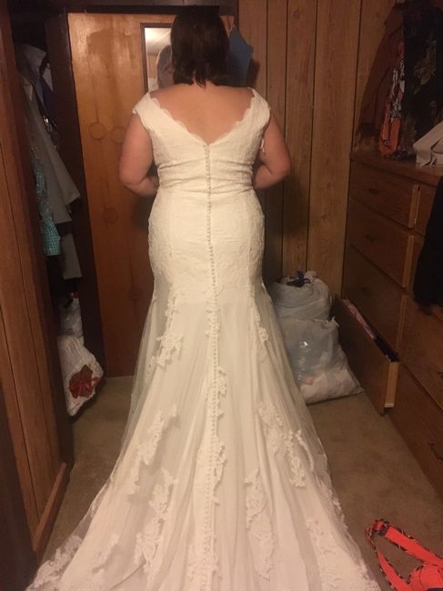 Hi everyone! So I am wearing my mother's wedding dress (I cried, she cried, dad cried) and our wedding is in Nov 2018. It's obviously tight but it does zip up. It's hard to take deep breaths but I can move. I didn't think it looked bad in person but...