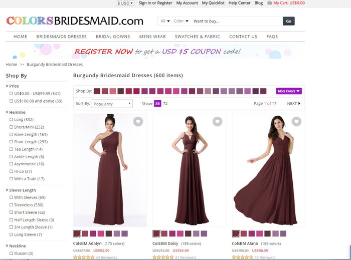 Where is the best and cheapest place to buy/order bridesmaid dresses? I just can’t see spending $100+ on dresses from David’s Bridal for my bridesmaids to wear one time. I am looking for something simple, plain, and burgundy in color. Suggestions?