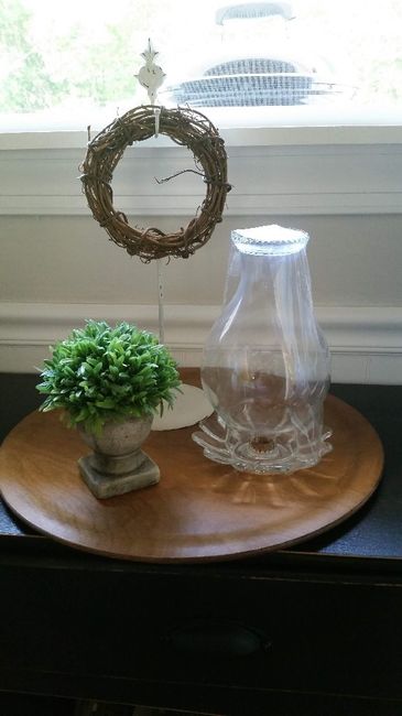 Ok I'm trying to plan out my centerpieces. The tables will start out with white linens and have mismatched vintage tablecloths over them. Also white napkins. I'm planning to have my centerpieces set up on white trays. The wreath stands are now...