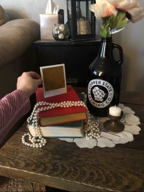 Hi all! I am having a vintage inspired wedding, and basically had the centerpieces figured out. We are using growlers from different breweries we have visited, and the blank card will hold a cute Polaroid of us/table number (once we take them)....