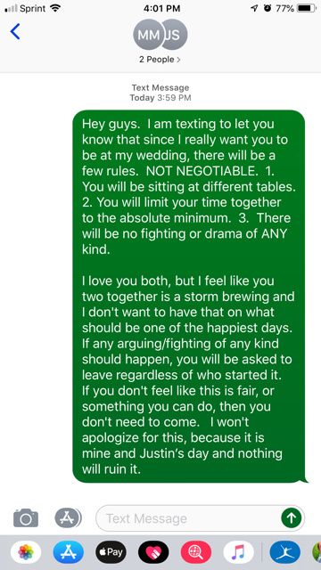 Soooo yesterday, I finally bit the bullet and sent a message to my sister and nephew who are constantly at each others throats. I set ground rules and explained what would happen if any unpleasantness arose, as well as if they didn't agree to my...
