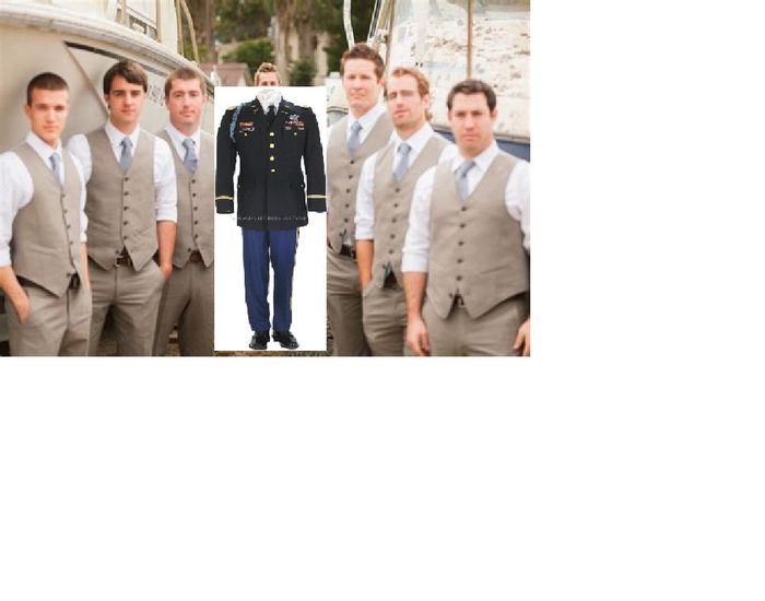 My fiancé is in the Army and will be wearing his ASU (Dress Blues). We are having a barn wedding and looking to stay on the causal wedding attire side. We are not wanting our groomsmen in tux or suits. My FH really wants to have them in Jeans and a...