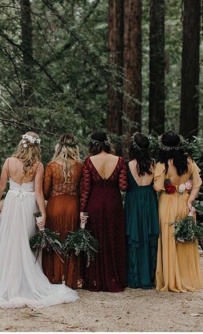 Guys! Please give me some advice on where I can go to get bohemian style bridesmaids dresses? I am having such a difficult time finding shops that sell unique dresses. The photo attached it not my photo but the dresses are exactly what I’m looking...
