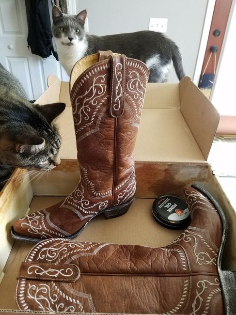 Please excuse my kitties. They are typical men. They love the smell of new leather. Anyway! Super stoked about my boots for my tiny mountain wedding! Anyone else not wearing dress shoes? Show em to me!