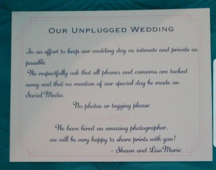 Any ideas on how to politely convey that we don’t want pictures of us posted by our wedding guests on social media? Basically, we would like to be the first ones to post our wedding pics, including the reception. I cringe when I see people posting...