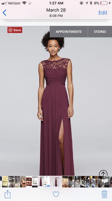 I'm starting to look into ideas for bridesmaid dresses. I want the dark red wine color in different styles. I have seen a bunch. Can I get see some pictures from your weddings or ideas that y'all may have that i haven't seen. My girls are various...