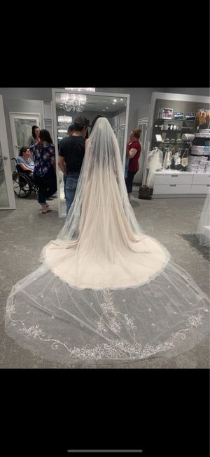 Alright ladies, I have a tough decision to make. Which veil looks the best with my dress? Fingertip or cathedral?