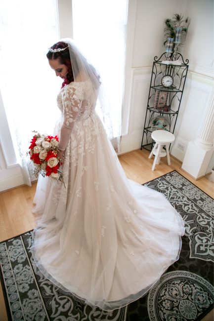 I love picture posts, so let's have a fun one. Show me your wedding finery - dress, jumpsuit, special outfit, whatever it is you wore/are wearing for the big day! Here's my "portrait" from the park near our venue: Deets: Maggie Sottero dress, veil by...