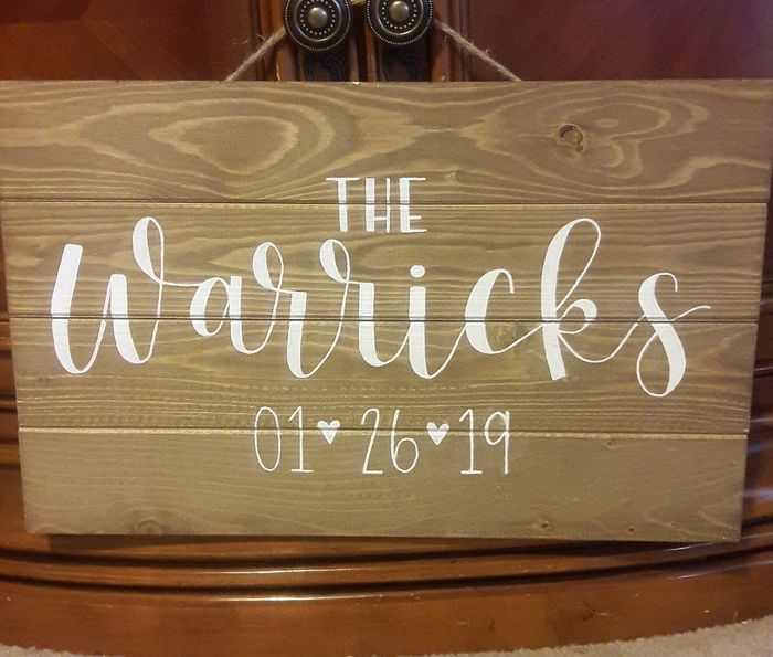 Just finished our unity DIY and I'm so in love I had to share! FH and I cut, sanded and stained the wood as well as screwing in the handle and my sister, the hand lettering queen, handed painted the words! (She does this professionally and has...
