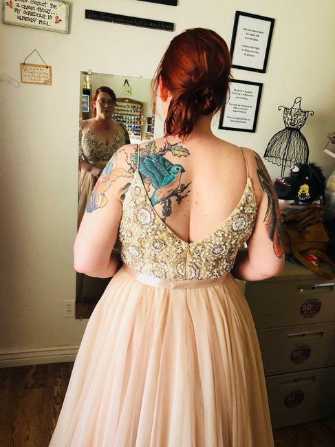 I am SO grateful to my awesome seamstress who got my dress done in a pinch! She was amazing and charged me a fraction of what I think a bigger place would. She's my hero!! Dress Dress back