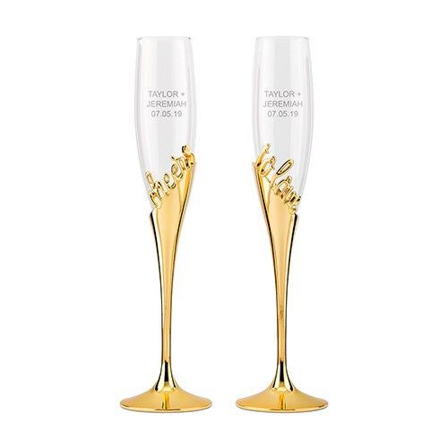 Are you buying special toasting flutes for the two of you to use at the reception? If so - did you get them engraved? Are they wedding themed, or the theme of your wedding? Are you skipping this item and using regular glasses? Show off your toasting...