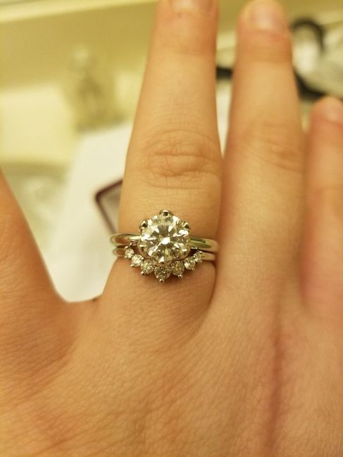 So I just got my ring cleaned, and when we were at the jewelers I tried on some wedding bands. I was originally leaning towards a vintage style enhancer that wraps around the top and bottom of my engagement ring but after trying that style on I feel...