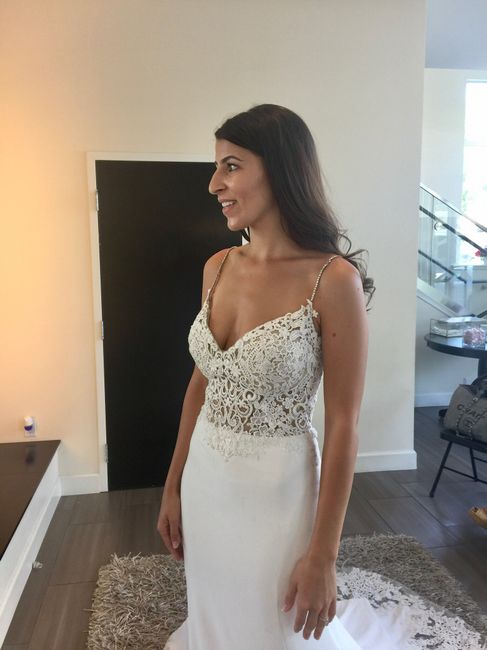 Hi everyone! I’m struggling finding the right jewelry to go with my dress. This picture is my dress when I tried on the sample. I was thinking of a simple necklace of maybe a pendant or pearl or maybe doing a y-necklace? The straps on the dress are...