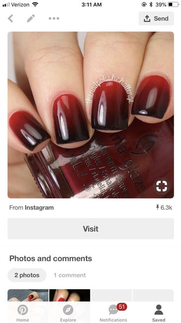 I want my nails to match with my wedding dress. It's a burgundy and black Victorian gothic style dress. Here's a photo of it. Any suggestions?