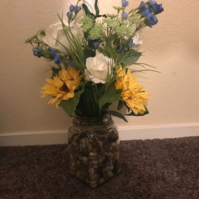 I'm finally going to my aunts house today to get a bunch of Mason jars to do our centerpieces. We already got the candles, seashells and sand Let's see yours.