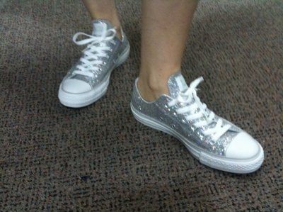 So, FS and I were walking around DSW last night, and he spotted these super sparkly Converse! He started off saying that I could change into them when my heels got uncomfortable, but then got the idea that the entire bridal party should wear them....