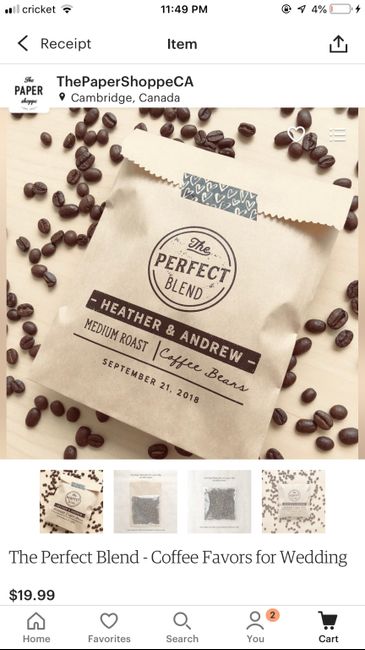 2439 days agoI did some month before wedding last minute shopping. I chose our favors to be half coffee ground and half k cups all medium roast coffee. My FH and I are coffee lovers and it’s even apart of how we met ! “Love is brewing” & “the perfect blend”...