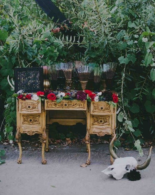 ok so I am extremely allergic to flowers so I plan on using fake flowers for everything since there will be no bridesmaids or groomsman there really isn't a need for two specific colors we are going for a country chic wedding no more than 80 people...