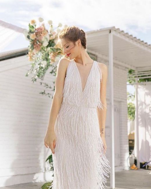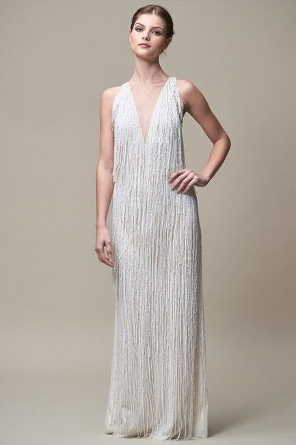 So, I found my dress! The best part is it was $2,800 and I was able to snatch it up at $795! The entire thing is made of glittering glass fringe. So excited for it to arrive! 😍